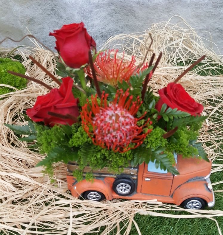 Coche(1):3 rosas rojas ,2 lotus rojos,verdes