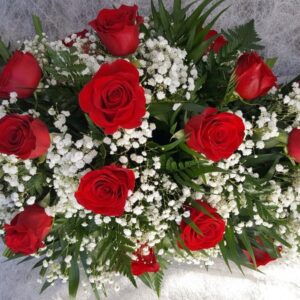 Palma (9R): 18 Rosas rojas, Paniculata,Verdes.