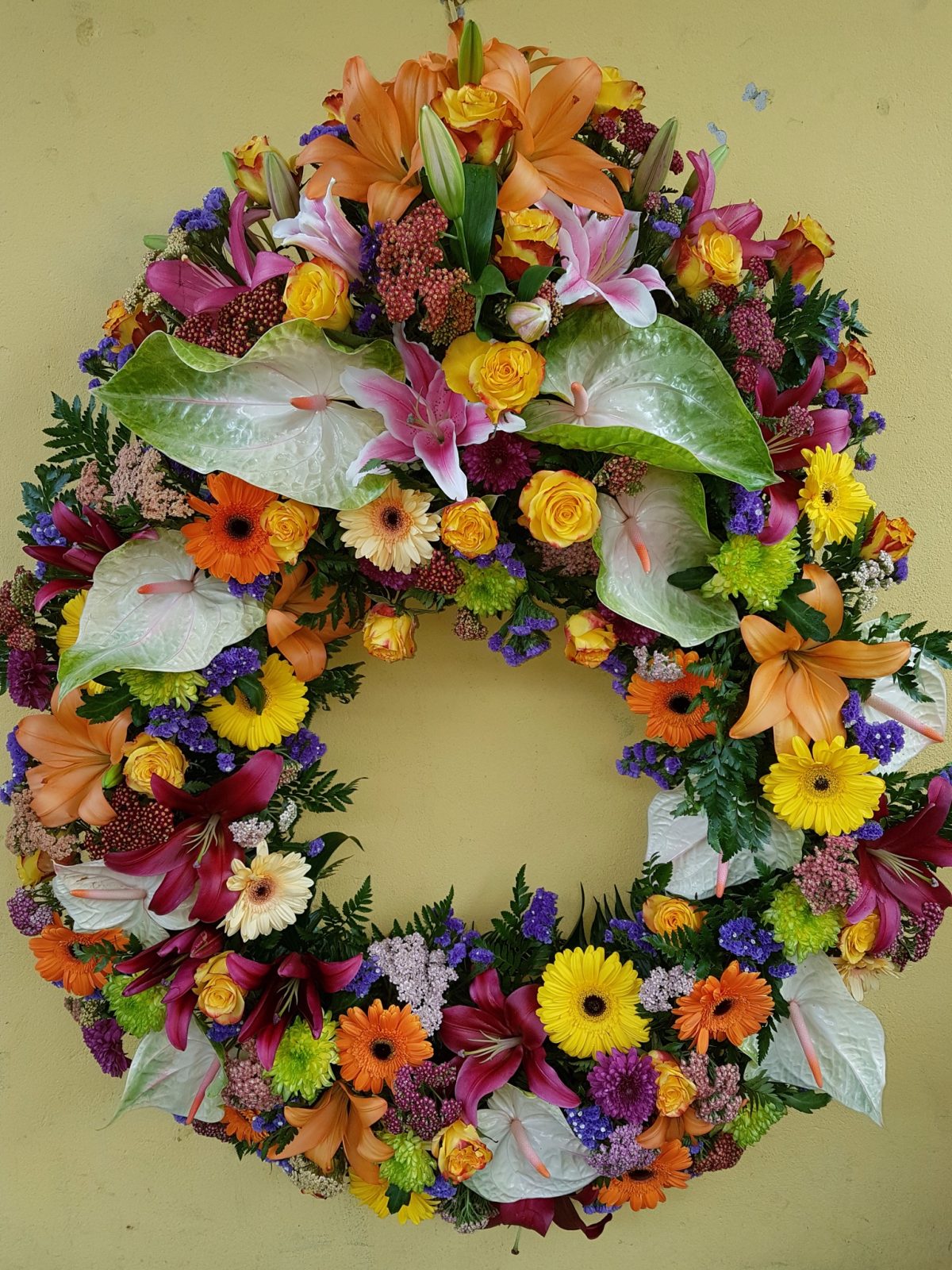 Corona (4A): Aro de 80cms. todo de flores variadas (colores según disponibilidad) .