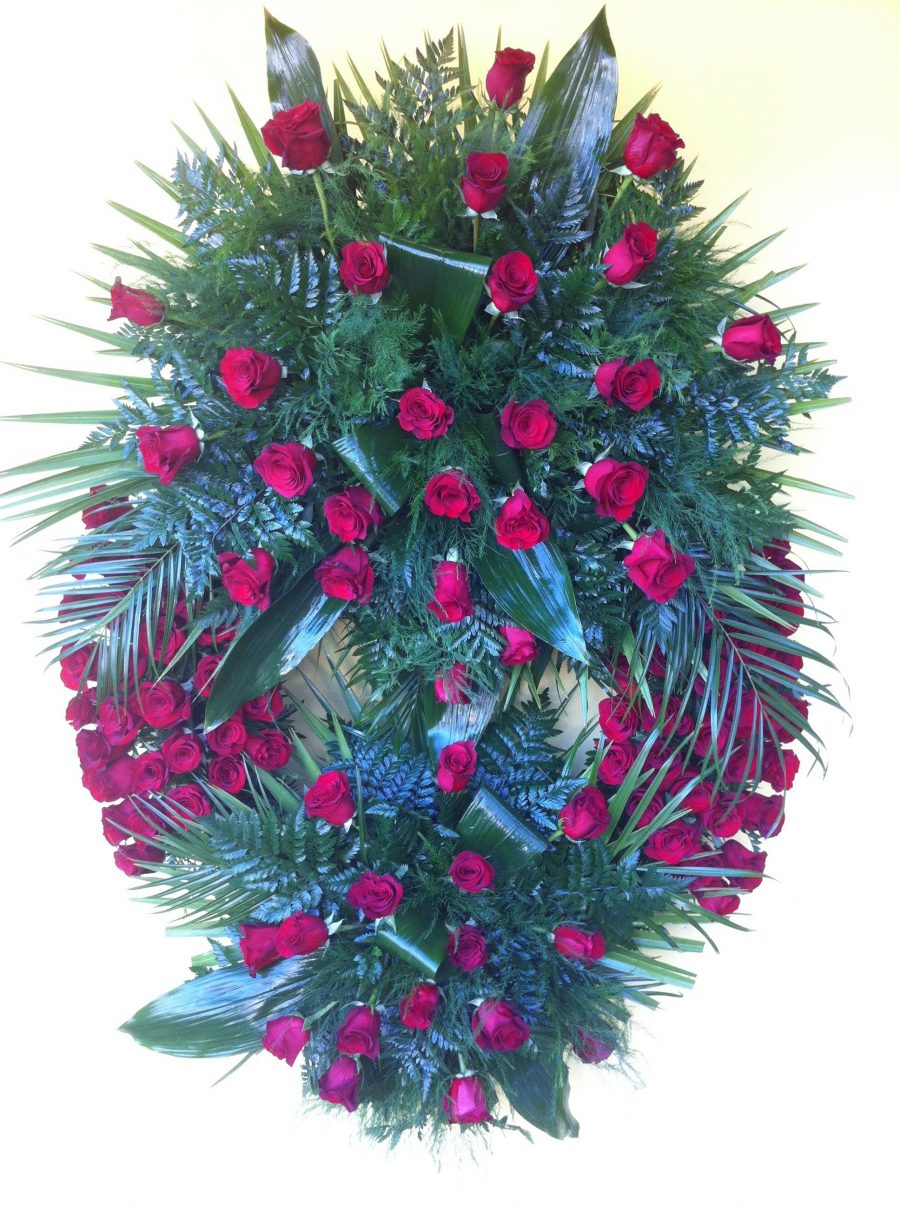 Corona de flores fúnebre de rosas, aro de 80cms. Oviedo.