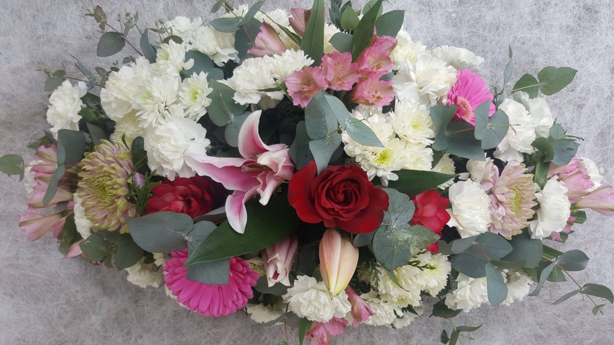 Palma (6B): Clavel, Margaritas, Lilium, Gerberas, Rosas, Paniculata.