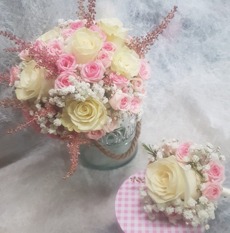 Ramo Novia(1): Rosas en dos tonos, Hiperico, Verdes